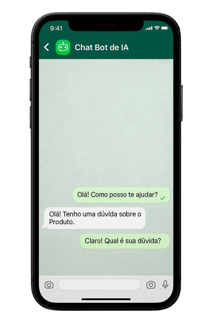 Combinando tecnologia de ponta em inteligência artificial com uma interface inspirada na experiência do WhatsApp, nosso agente virtual é treinável, personalizável e pronto para automatizar: